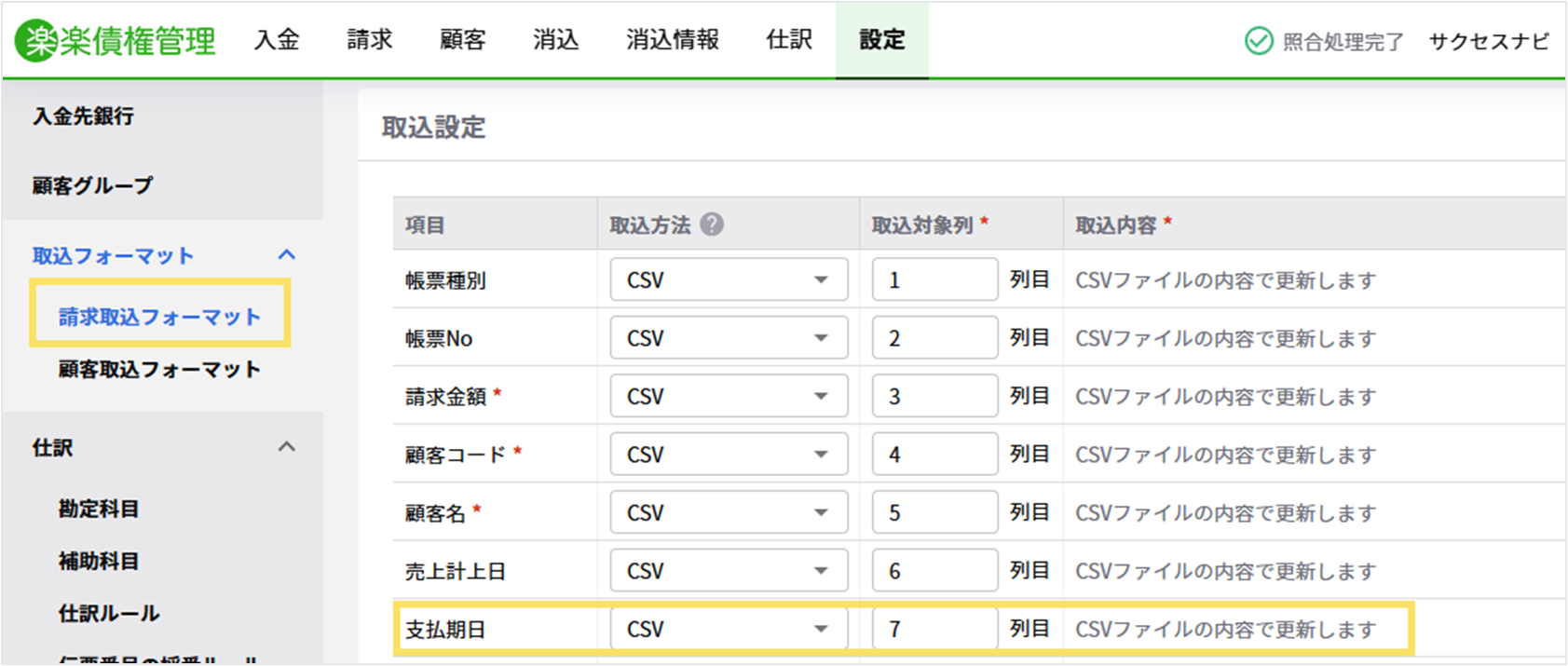 請求データに「支払期日」がありませんが、消込に利用できますか?