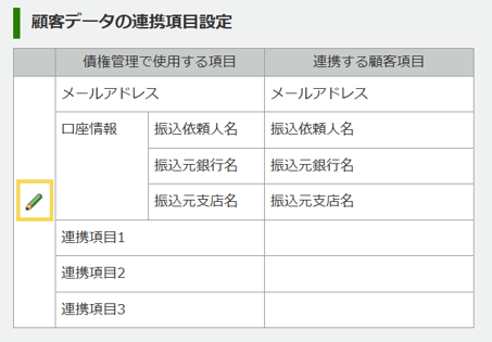 - 顧客情報の連携項目設定の鉛筆マークをクリックします。