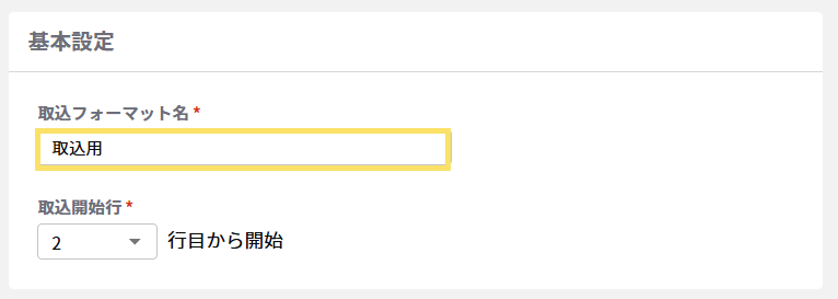 Excelや販管システムで管理されているデータを取込される場合は、「○○システム顧客データ取込用」など分かりやすいフォーマット名を入力ください。
