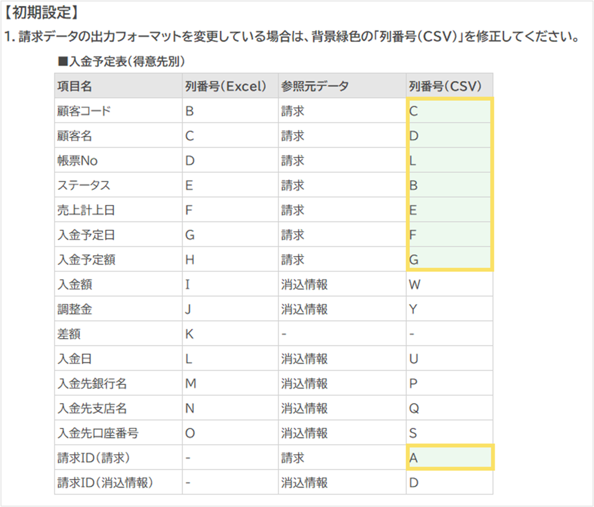 - 「楽楽債権管理」上の請求データの出力フォーマット設定を変更している場合は、