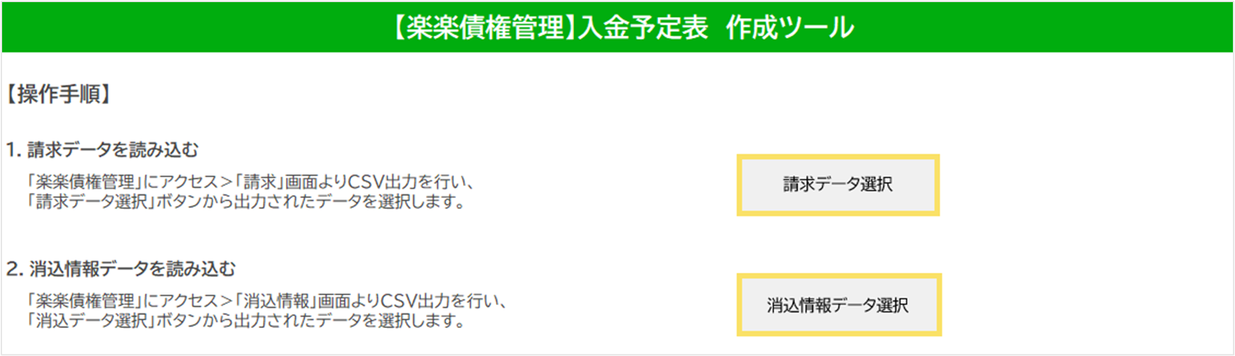 本ツールは、「楽楽債権管理」から出力した請求データを元に、得意先別の入金予定表を